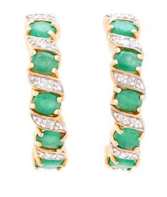 Indulge in opulent elegance with our Gem Earrings Fine Jewelry. Made with 18K yellow gold over sterling silver, these designer twisty earrings feature stunning emeralds and diamonds for a luxurious touch. Elevate any outfit with these beautiful and sophisticated earrings.