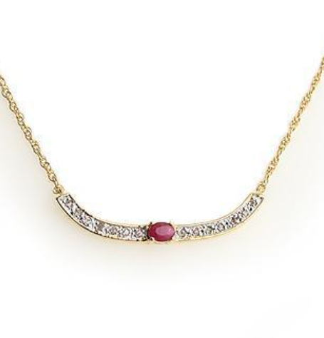 Gorgeous Womens 18K Yellow Gold Over Solid Sterling Silver 0.10 CTW Diamond and 0.42 CTW Ruby 18 Inch Designer Necklace